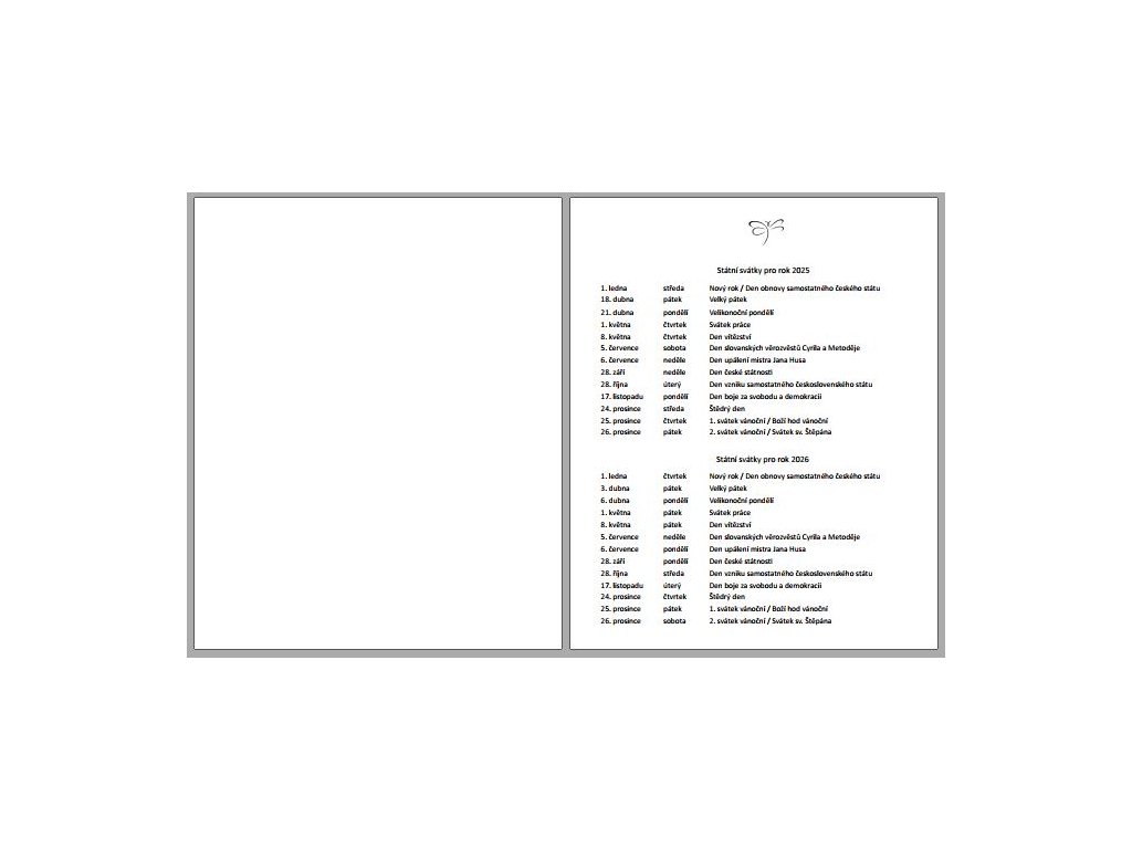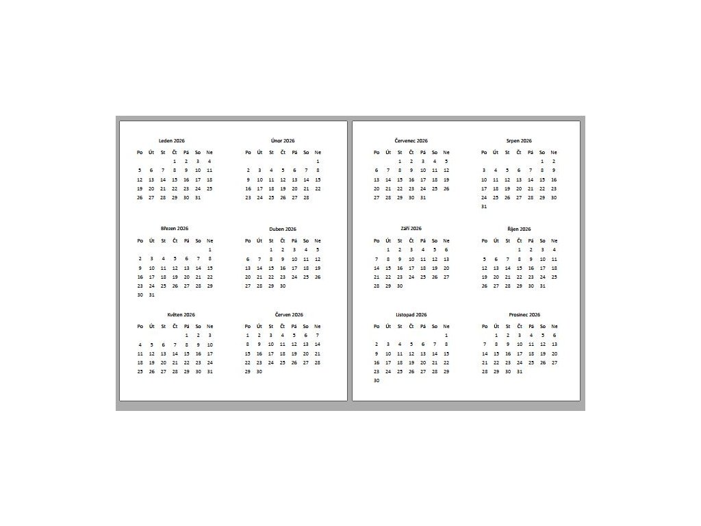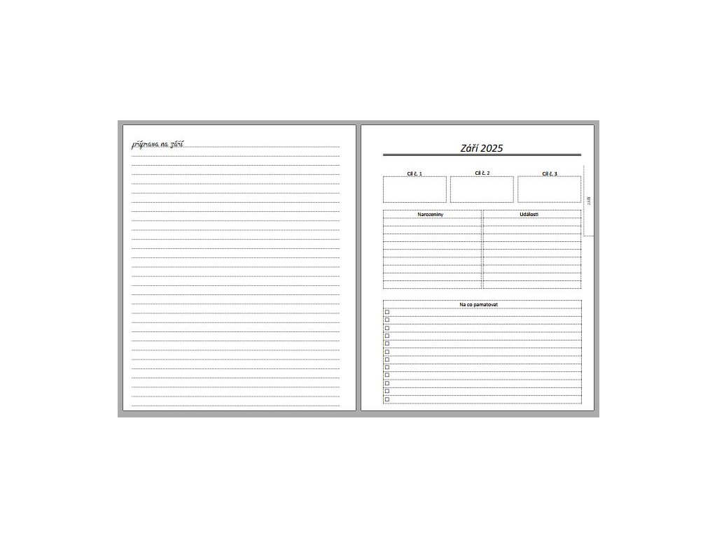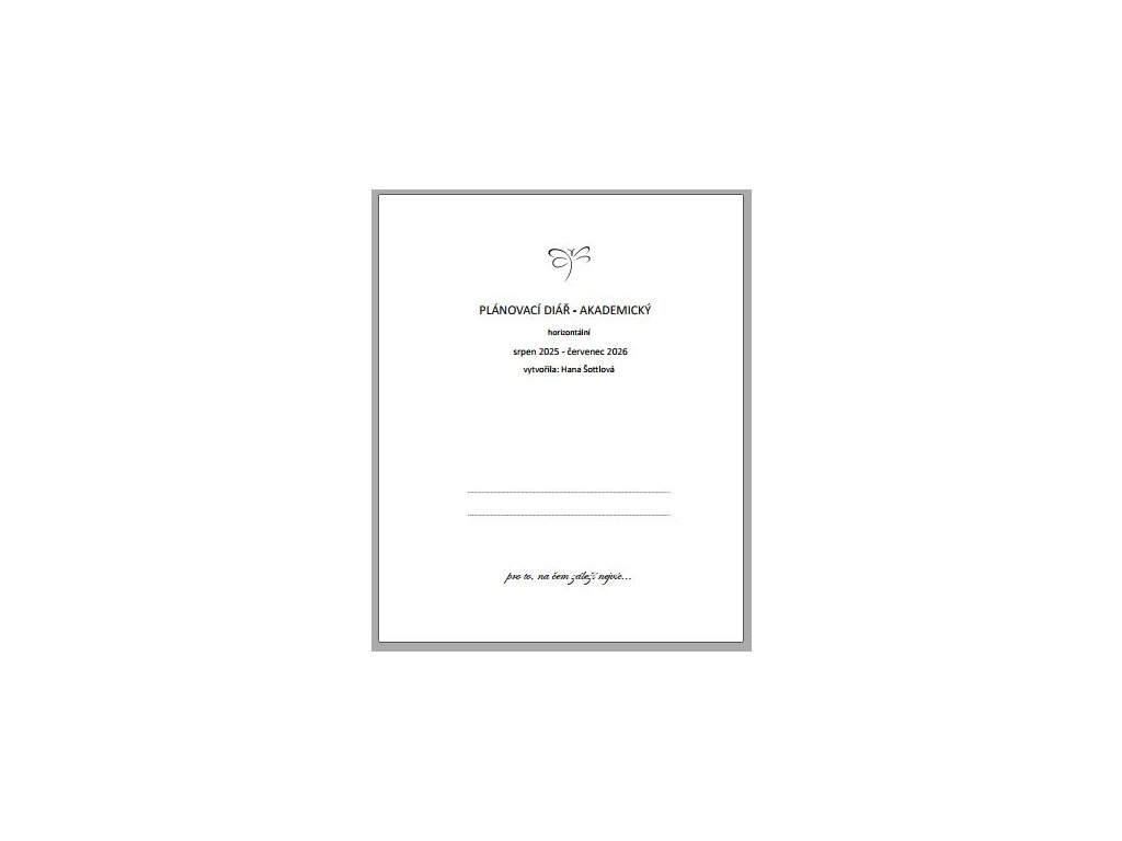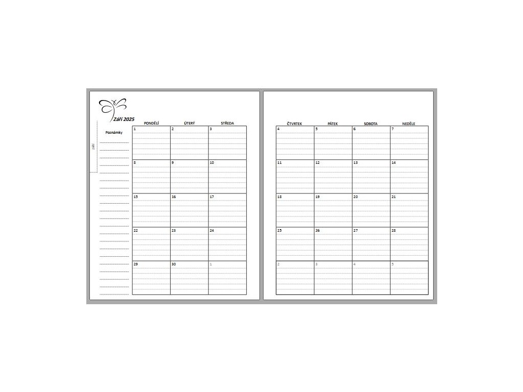 Diář obsahuje 12 měsíců, počínaje srpnem 2025 a konče červencem 2026.