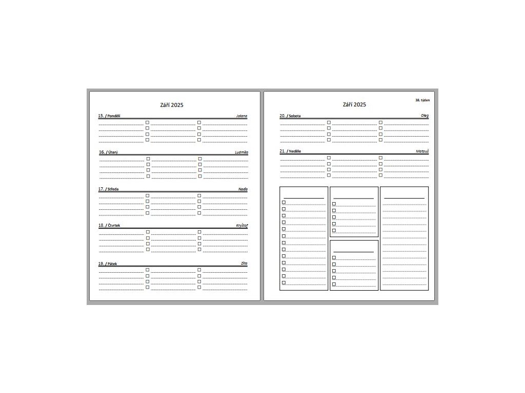Datovaný diář pro všechny, co si potřebují každý den odškrtnout spoustu splněných úkolů.