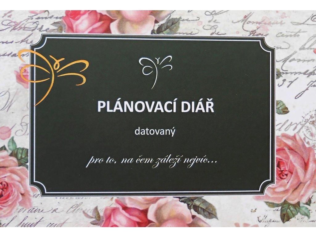 Ne nadarmo se říká, že růže je královna květin. Nostalgická, něžná, romantická... a pořád dokonalá venkovská růže. Taková je letošní obálka s názvem Vintage roses. Nechybí ani naše logo vážky, ražené zlatou termoražbou. Diář je na dvojité zlaté metalické spirále, díky čemu jsou jeho stránky otočné o 360 stupňů. Jeho rohy jsou chráněny mosaznými knihařskými růžky.